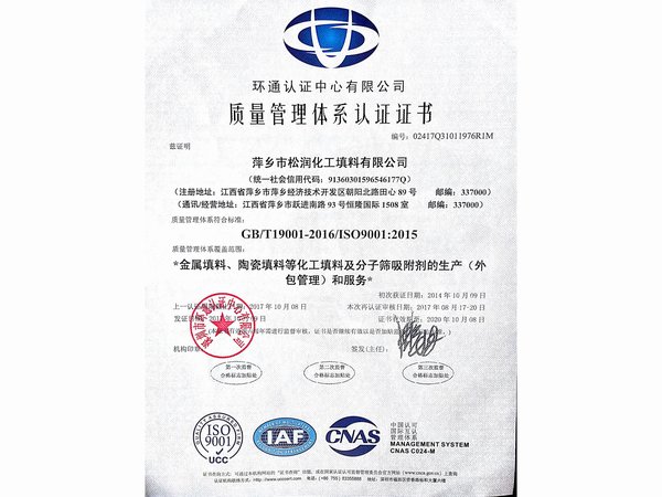 - 萍鄉(xiāng)市松潤化工填料有限公司位于江西省萍鄉(xiāng)市國家經(jīng)濟開發(fā)區(qū)西區(qū),是專業(yè)生產(chǎn)、經(jīng)營陶瓷、聚丙烯、金屬填料、塔內(nèi)件、水處理濾板、濾管、濾料、瓷球、分子篩、催化劑、活性炭、蜂窩陶瓷、瓷質(zhì)耐磨托輥等系列產(chǎn)品的民營企業(yè)。所有產(chǎn)品由國家非金屬材料和設備質(zhì)量監(jiān)測中心監(jiān)測檢驗認證。公司現(xiàn)有員工280人,其中有高、中級職稱技術人員36人。工藝先進,技術力量雄厚,產(chǎn)品質(zhì)量可靠,配... ...